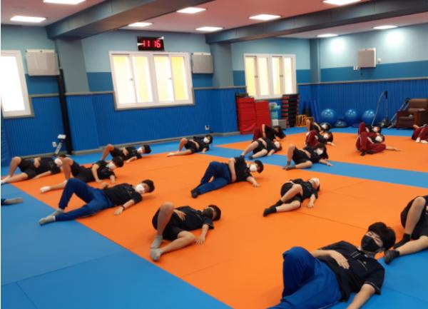 학교스포츠클럽시간에는 학년별로 유도반을 개설하여 전교생들이 유도를 경험할 수 있도록 하고 있다. 2020년 코로나 상황으로 체육활동 10여 명의 학생들이이 주춤하였으나 현재는 가맹단체 등록 선수 6명과 방과후 스포츠클럽으로 아침, 점심, 방과 후 본인의 목적에 따라 자발적으로 운동을 실시하고 있다.