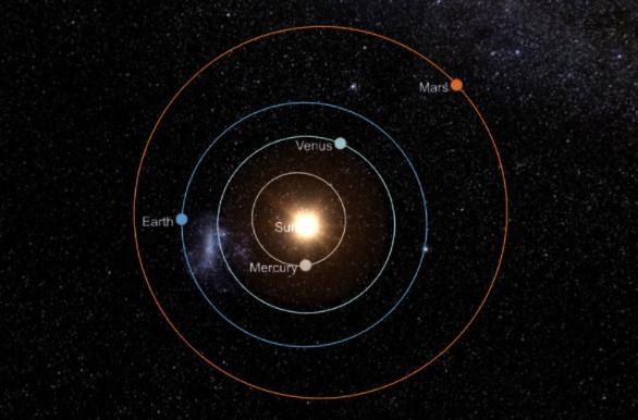 화성은 미국과 중국의 탐사선들이 화성 표면에서 열심히 탐사를 하고 있으나 현재 지구에서 화성은 거리가 약 3억7천만km 정도 떨어져 있어 서쪽하늘에서 그리 밝은 모습으로 보이지는 않는다.