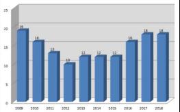 출원인별로 살펴보면, 내국인이 126건, 외국인이 20건이었고, 또한, 대기업이 90건, 중소기업이 24건, 대학 9건순으로 조사됐다.