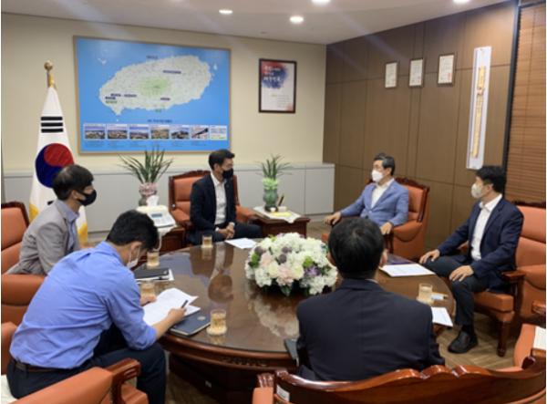 제주특별자치도의회 부공남 교육위원장과 제주국제자유도시개발센터 문대림 이사장은 영어교육도시 국제학교 IB 교육연수 및 방학중 영어캠프 확대를 통한 공교육과의 상생협력 방안을 마련하고자 2021년 7월 20일 14시 JDC 이사장실에서 간담회를 실시하였다.