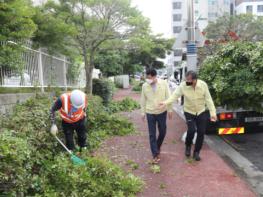 안동우 제주시장은 7월 23일 오전 노형동 달마루길 일대 가로수 작업 현장을 점검하고 가로수 정비 직원들의 노고를 격려하였다.