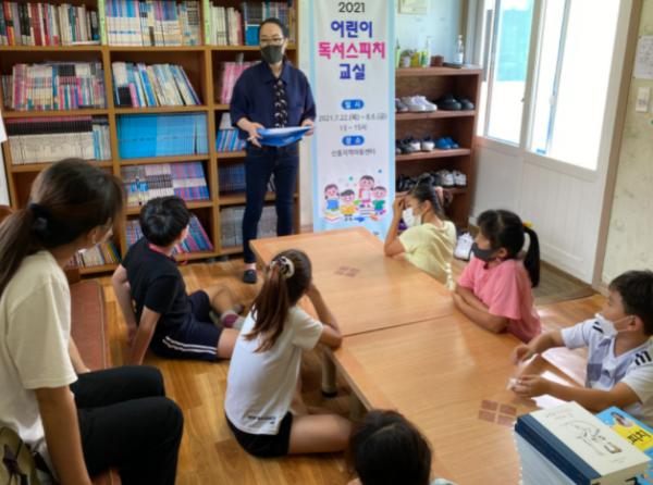 제주특별자치도교육청 제남도서관은 지역아동센터 지원 사업의 일환으로 신흥지역아동센터에서 어린이 독서스피치 교실을 7월 22일에 운영하였다.