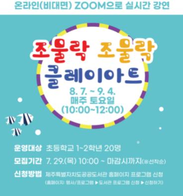 제주시 기적의도서관에서는 초등학생 1~4학년을 대상으로 오는 8월 7일부터 9월 5일까지 줌(ZOOM)을 활용한 온라인 여름방학특강을 운영한다고 밝혔다.