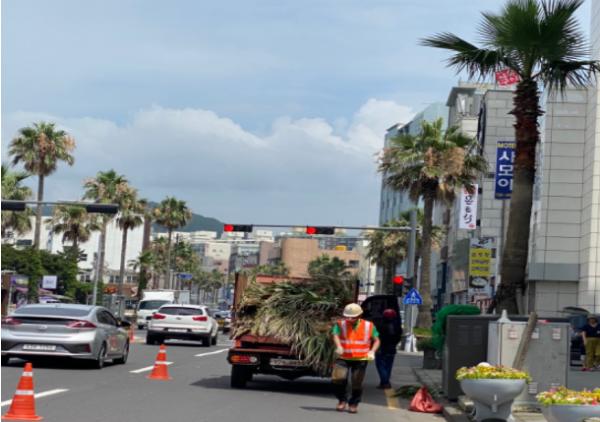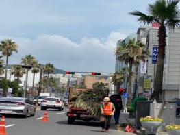 제주시는 1980년 ~ 1990년대 식재된 워싱턴야자수가 대형화(수고 15m)됨에 따라 재난재해 위기 발생 시 인명 및 재산피해 발생이 우려되어 워싱턴야자수를 수시로 정비하고 있다.