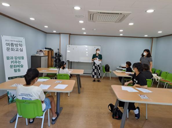 이번 여름방학 문화교실은 자체 운영 프로그램인 경우 7월 28일부터 8월 10일까지 총 10일 동안 매일 2시간씩 운영된다. 다양한 체험 위주 프로그램으로 구성하여, 칼림바 등 7개 강좌에 초등학생부터 중학생까지 총 50여명의 학생이 참여하고 있다.