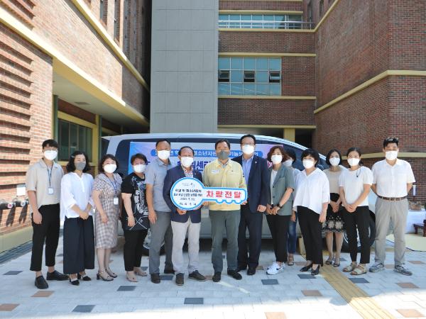 속초시가 학교 밖 청소년 지원센터를 이용하는 청소년의 이용편의증진을 위해 승합자동차를 구입하여 위탁사업자인 속초시 시설관리공단에 전달하였다.