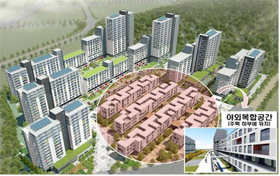 단지 중앙에 위치한 주택의 하부에는 주민바자회 등 다양한 주민행사 개최가 가능한 야외 복합공공공간이 위치하여, 화성동탄2 행복주택이 단순한 주거공간을 넘어 지역 내 소통과 교류의 중심이 될 것으로 기대된다.