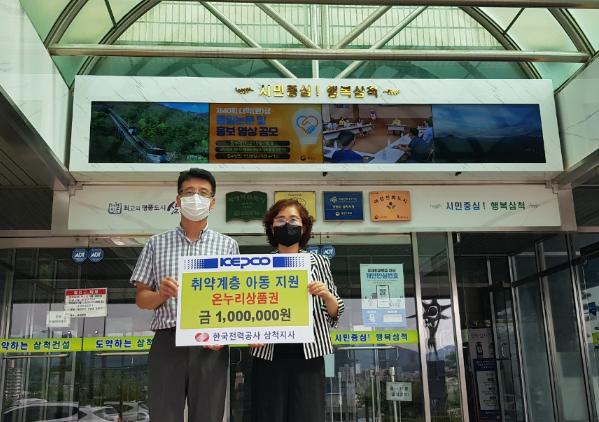 삼척시는 한국전력공사 삼척지사에서 최근 시청을 방문해 온누리 상품권 100만원(1만원권)을 기탁했다고 밝혔다.