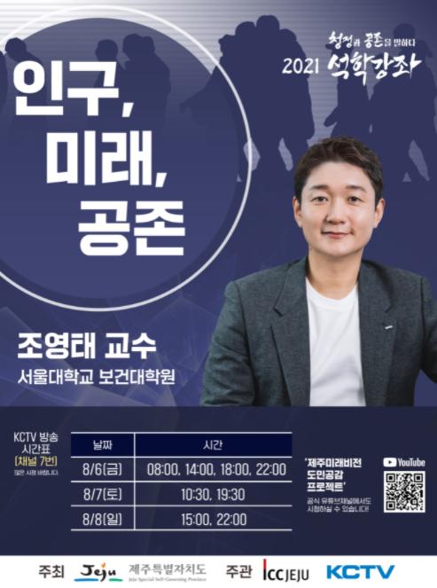 제주특별자치도는 우리나라 인구학의 최고 권위자인 조영태 서울대 교수를 초청해 ‘인구, 미래, 공존’을 주제로 한 석학강좌를 개최한다고 밝혔다.