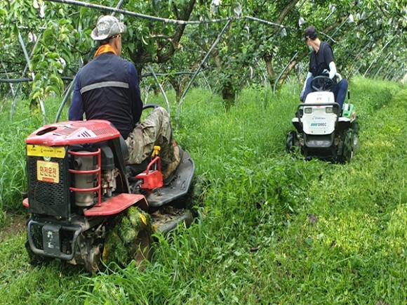 이에 박승영 홍천군 농업기술센터 소장을 비롯한 농기계임대사업소 직원 5명 등 6명은 봄·가을철에 비해 상대적으로 임대 수요가 적은 승용제초기 2대와 인력제초기 2대 등 유휴 임대농기계를 활용해 제초작업 등의 일손을 도왔다.