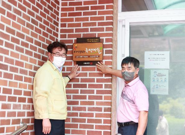 최명서 영월군수, 신명순 도의원, 두산2리장 이상국, 마을주민 등이 참석한 가운데 녹색마을 현판과 시상금 전달식을 가졌다