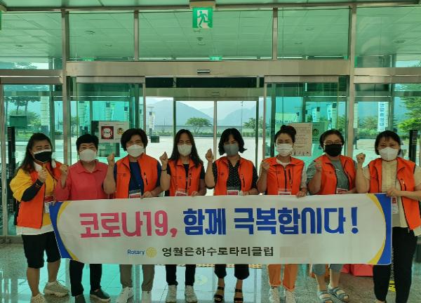 영월군 자원봉사단체에서 스포츠파크 실내체육관에 설치된 코로나-19 백신 접종센터를 찾아 코로나-19가 조기 종식되기를 바라는 마음으로 백신접종 행정인력 자원봉사에 동참하였다.