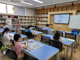 참가 신청 학생들을 대상으로 한 이번 독서교실은 오전 9시부터 10시 30분까지 매일 2교시씩 운영되었으며, 책을 읽고 책과 관련하여 여름을 더 즐겁게 보낼 수 있는 다양한 만들기 활동을 하였다. 1일차에‘수박수영장’을 읽고 수박 비누 만들기 활동을, 2일차에는‘팥빙수의 전설’을 읽고 민속 부채 만들기 활동을 하였다. 3일차에는‘왜요?’를 읽고 외계어를 넣어 비치볼을 만들었으며, 4일차에는‘달 샤베트’를 읽고 바닷속 액자 만들기를 하였다.