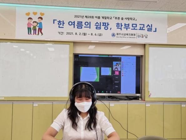 제주시교육지원청관계자는 “2021 제28회 여름 계절학교「한 여름의 쉼팡, 학부모교실」이 코로나19 상황에 따라 비록 비대면으로 진행이 되었지만, 그동안 궁금했던 내용을 공유함으로써 학부모 자신의 역량을 강화할 뿐만 아니라 코로나19 상황을 슬기롭게 이기는 가족 간 소통 방법을 터득할 수 있는 계기가 되어 학부모에게 힐링과 재충전의 기회가 될 것으로 기대한다.”고 전했다.