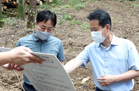 허필홍 홍천군수는 8월 9일 남산 산림공원을 조성 중인 홍천읍 연봉리 산 9-1번지를 방문, 현장을 점검했다.