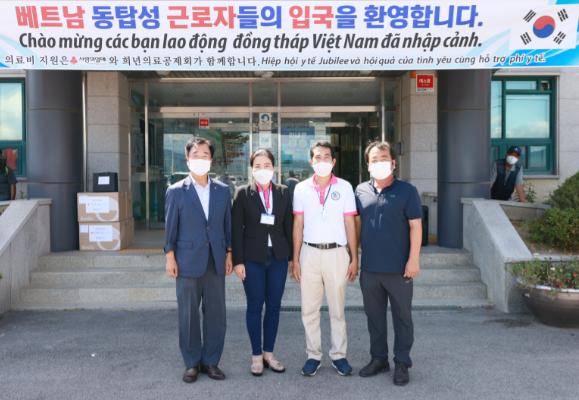 이현종 철원군수는 베트남 계절근로자에게 얼음조끼, 목선풍기, 마스크 등 생활물품을 전달하고 “베트남 동탑성과 맺은 협약을 토대로 상호 방역지침 준수 등 다각도의 협의를 거쳐 계절근로자 추가 입국을 위해 노력해 나가겠다”고 전했으며, 작업 중 발생되는 질병 및 부상 시 의료비를 전달하는 희년의료공제회(대표 정현구)도 현장에서 마스크를 전달했다.