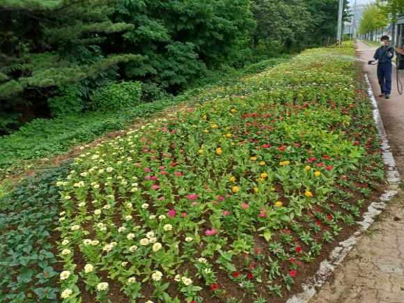 속초시가 대포 농공단지 입구를 비롯한 주요 도로변에 백일홍, 메리골드 등 여름꽃 25만 본 식재를 완료했다.