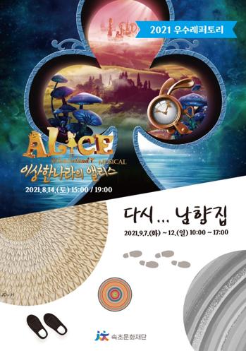 ‘우수레퍼토리’사업은 공연과 전시로 나누어 진행된다. 8월 14일 15시와 19시 2회 공연하는 입체동화 3D 뮤지컬 '이상한 나라의 앨리스'와 9월 7일 ~ 9월 12일까지 북한이탈주민의 삶에 대한 설치미술전 '다시... 남향집'이 열린다.