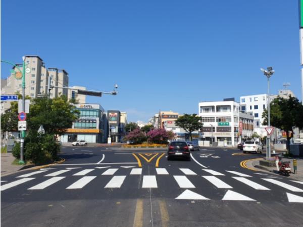 서귀포시는 도로환경개선을 위해 동문로터리(회전교차로) 포장 보수공사를 완료하였다고 밝혔다.