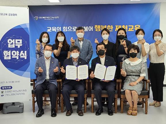 또한, 영월진로체험지원센터와 제천진로체험지원센터도 마을교육공동체의 성장과 지역사회 교육기부 시스템 구축의 새로운 동력을 마련하고자 업무협약을 진행하였다.