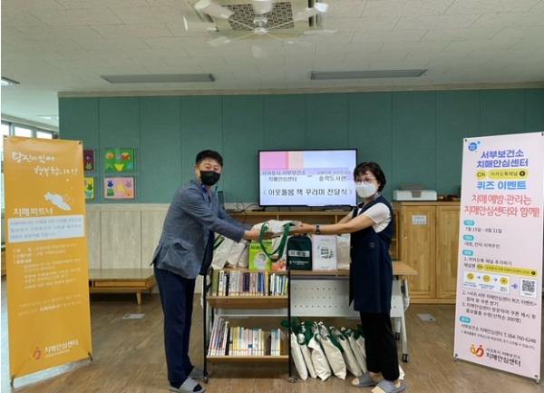 서귀포시 서부보건소와 송악도서관은 책을 매개로 하는 돌봄문화 확산을 위해 8월 11일 치매고위험군과 영유아 대상 「이웃 돌봄 책 꾸러미사업」을 연계 운영하기로 하였다.