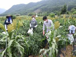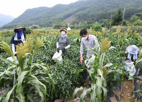12일 평창군청 정연길 부군수를 비롯한 대화면, 일자리경제과, 농업축산과 직원 30여 명은 대화면 상안미리에서 양배추밭 비료살포와 고추따기 등 농촌 일손돕기 봉사활동을 펼쳤다.