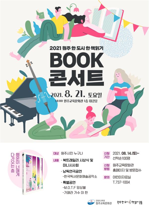 원주교육문화관은 21일 오후 2시, 교육문화관 1층 대강당에서 지역주민 100명을 대상으로 ‘원주 한 도시 한 책 읽기’ 북 콘서트를 개최한다.