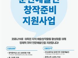 이번 사업은 코로나19로 생계와 창작활동이 어려운 지역 전문예술인에게 1인 100만원, 총 150명에게 창작준비금을 지원하며 별도 정산 없이 활동결과보고서를 제출하면 된다.