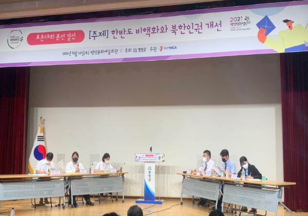 「2021 평창 평화주간」, 청소년·청년 토론대회는 국적을 불문하고 17세~25세 청소년과 청년들이 2인 1개 팀 또는 3인 1개 팀으로 참가하여 ‘한반도 비핵화와 북한인권 개선방안’에 대해 찬성과 반대로 나뉘어 토론하였다.