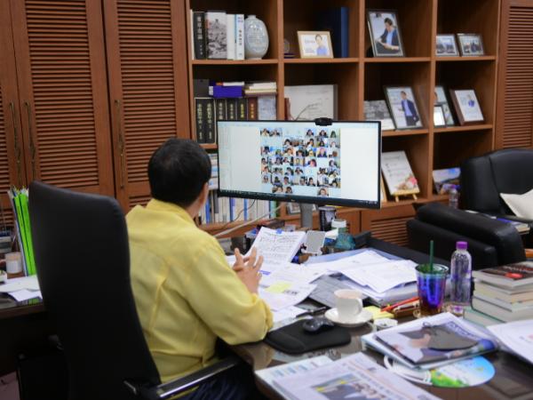 속초시는 지난해 11월 9일(월)부터 현재까지 총 15회에 걸쳐 영상회의를 통해 간부회의를 개최하였고 포스트 코로나 시대에 대응하기 위해 간부회의 뿐만 아니라 직원 월례조회, 미래발전 공유회의 등 각종 회의, 교육 등에도 적극 활용하고 있다.