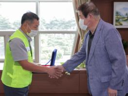 원주시의회는 우연히 발견한 화재를 초기에 진압해 대형피해를 예방한 서강일·유재준 씨에게 17일 감사패를 수여했다.