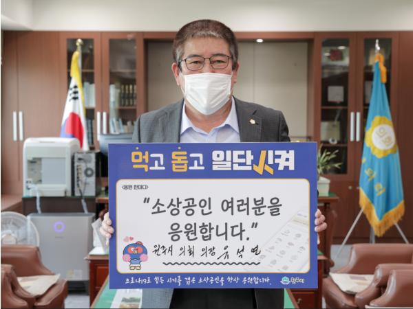 유석연 원주시의회 의장은 18일 ‘먹고 돕고 일단시켜 챌린지’캠페인에 동참했다.