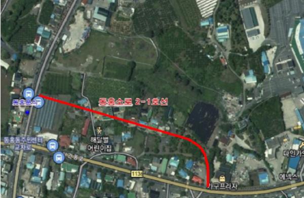 소로2-1호선(L=380m, B=8m)은 1987년 4월 9일에 도시계획시설 결정되어 20년 이상 미개설로 인하여 마을회 및 지역주민으로부터 도로 개설 요청이 지속적으로 요구되고 있는 노선이다.