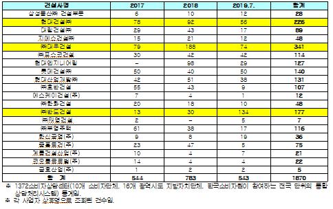 국회 정무위원회 소속 유의동 의원이 한국소비자원으로부터 제출받은 자료에 따르면, 올해 도급순위 상위 20위권내 건설사를 대상으로 소비자피해 상담 접수 건 수를 확인한 결과 2017년 544건에서 지난해 783건으로 급격히 증가했고, 피해구제 접수 건 역시 41건에서 69건으로 증가한 것으로 나타났다.
