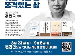 이번 강좌는 '대통령의 글쓰기' 저자인 강원국 작가가 ‘어른다운 말, 품격있는 삶’을 주제로 삶의 품격을 높이는 말하기에 관한 이야기를 작가의 오랜 경험과 통찰, 특별한 지혜를 담아 전달할 예정이다.