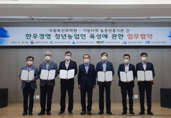 횡성군농업기술센터는 지난 26일 오후 1시, 국립축산과학원 대강당에서 농촌진흥청 국립축산과학원과 한우경영 청년농업인 육성에 관한 업무협약을 체결하였다고 밝혔다.