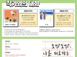 이번 행사에서는 ‘토닥토닥, 나를 위로하는 책’도 운영된다. 코로나19 또는 자신이 힘들었던 시간을 극복할 수 있는 용기와 힘을 준 책에 대한 추천 글 또는 느낌 글을 원고지에 손글씨로 써서 제출하면 접수순으로 50명에게 소정의 기념품을 제공한다.