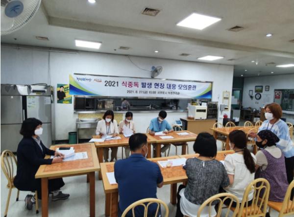 또한 코로나19 상황을 고려하여 손 소독제 비치, 수시 환기 등 방역수칙 준수하여 진행하였으며 실제와 유사하게 식중독 모의훈련을 실시하여 각 기관별 신속한 현장대응을 점검하는 기회가 되었다.
