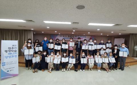 ‘2021년 원주시 평생학습 매니저 양성과정’ 수료식이 지난 27 원주시 평생교육원 학습관에서 열렸다.