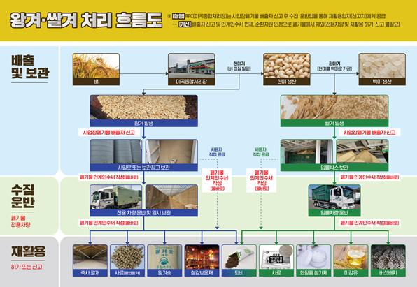 환경부는 왕겨·쌀겨가 순환자원으로 쉽게 인정되어 폐기물 규제에서 제외될 수 있도록, 폐기물배출자신고를 면제하고 순환자원 인정절차를 대폭 간소화하는 등 왕겨·쌀겨 순환자원 인정 활성화 방안을 추진한다.