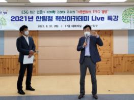 ‘혁신아카데미 라이브(Live)’는 산림청 직원 역량 강화 프로그램 중 하나로 사회, 경제, 기술 등 산림을 둘러싼 다양한 분야의 전문가 특강을 통해 산림청 직원의 변화·혁신 전략을 모색하고 지원하기 위한 교육이다.