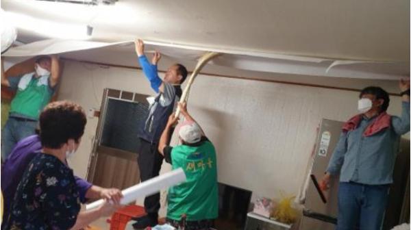 20여명의 회원들은 안흥4리 한 가정에 모여 방과 주방, 거실의 도배를 교체하였으며 집 안팎 대청소를 실시하였다. 회원들은 비가 와 후텁지근한 가운데서 구슬땀을 흘리며 주거 환경 개선작업에 힘썼다.