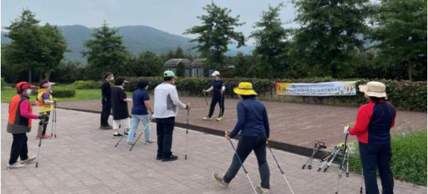 철원군 보건소는 8월 30일 군탄공원 광장에서 현재 진행 중인 ‘따로 또 같이 걸어요’ 프로그램 회원들을 대상으로 ‘노르딕 워킹’ 교육을 실시했다.
