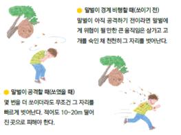 이때, 놀라서 땅에 엎드리고 웅크리면 더욱 많이 공격받기 쉬우니 머리 부분을 보호하며 신속히 그 자리에서 벗어난다.