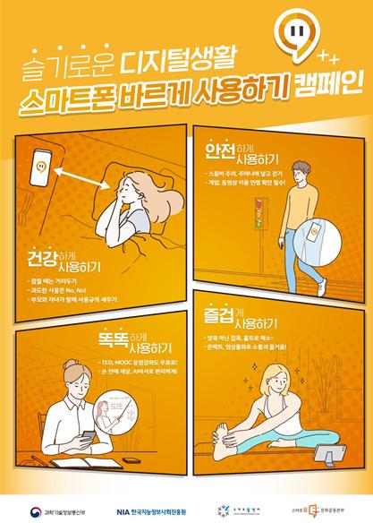 과학기술정보통신부는 ‘슬기로운 디지털 생활, 스마트폰 바르게 사용하기’ 캠페인을 한국지능정보사회진흥원과 함께 9월부터 2개월간 전개한다고 밝혔다.