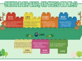 한편, 농식품부 주관 ‘신활력플러스사업’과 행정안전부 주관 ‘지역주도형 청년일자리 지원사업’ 등에는 산림청 산림일자리발전소 발굴 그루경영체(주민공동체) 등이 참여하여 사업 고도화를 위한 협업을 진행하고 있다.
