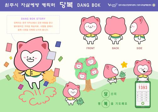 원주시 정신건강복지센터 부설 원주시 자살예방센터는 올해 자살예방 캠페인의 하나로 개최한 자살예방 캐릭터 공모전 최우수상에 ‘당복’이 선정됐다고 밝혔다.