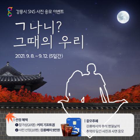 강릉시는 다가오는 추석 명절을 맞이하여 명절날의 추억이 담긴 사진을 공유하여 마음 따뜻한 연휴를 선물하고자 오는 8일부터 5일간 강릉시 공식 페이스북과 인스타그램을 통하여 사진 응모 이벤트를 개최한다.