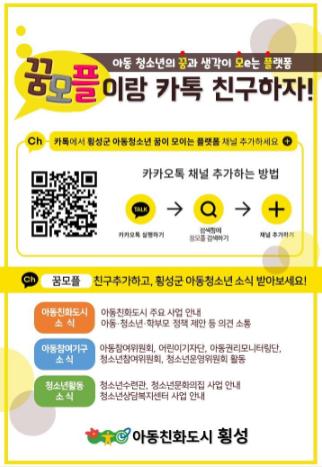 횡성군은 아동·청소년의 비대면 소통을 강화하기 위해 카카오톡 채널'꿈모플(꿈이 모e는 플랫폼)'을 운영한다고 밝혔다.
