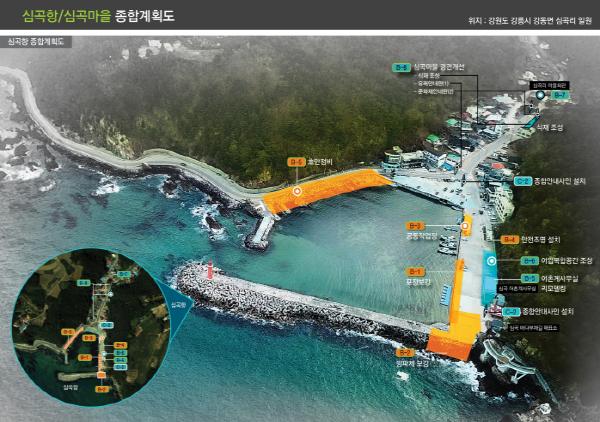 「정동-심곡항 어촌뉴딜 300사업」1차분 사업은 해안단구길 외 4개소 시설공사에 대하여 88억을 투자하여 해안단구길 조성, 해안보행로 조성, 물량장 개축, 다목적 광장 조성, 방파제 미관개선 등 내년 4월 목표로 마무리할 계획이며,